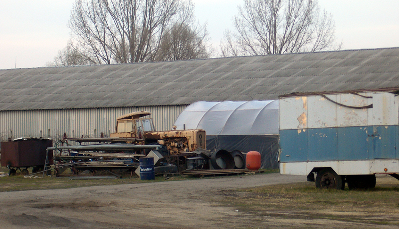 A Március 15.ei hosszúhétvégét Békéscsabán töltöttük. Éppen Lakitelek és Tiszaug között a 44 főúton haladtunk. A menetiránytól balra, felfigyeltem a Piroska szörp gyár/raktár udvarán (46.878499,20.017948) egy jellegzetes formájú szerkezetre.